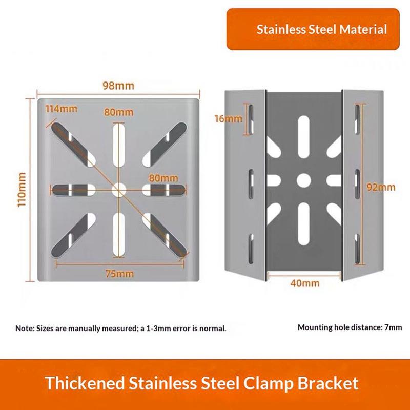 Die aus Edelstahl 201/304 gefertigte Halterung bietet eine hervorragende Festigkeit und Verformungsbeständigkeit. Die 2,0 mm dicke Struktur erhöht die Tragfähigkeit, so dass sie sich für die Aufnahme einer Vielzahl von CCTV-Kameramodellen eignet.