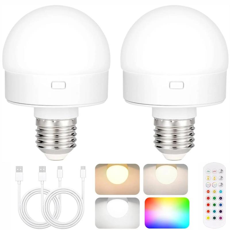 • Wiederaufladbare Glühbirne mit RGB und Fernbedienung - E27 - 2 Stk.