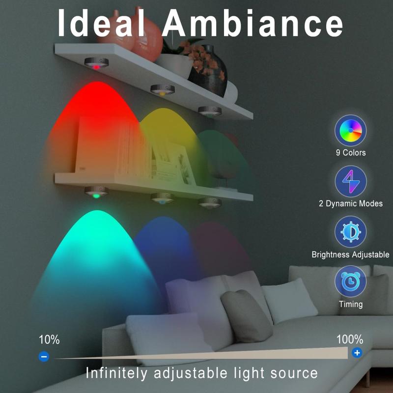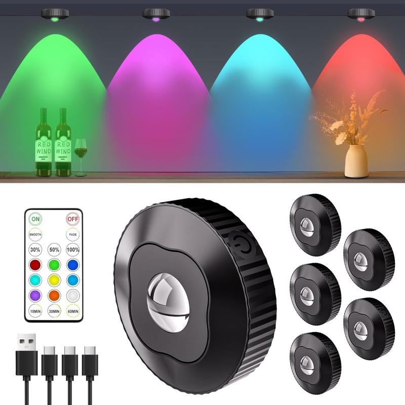 RGB-Schrankbeleuchtung - USB wiederaufladbare Ambient Night Light mit Fernbedienung für Schlafzimmer Mood Lighting - 6 Pcs.