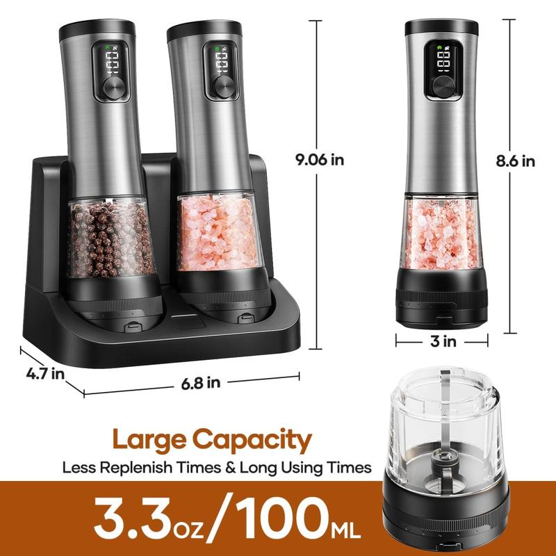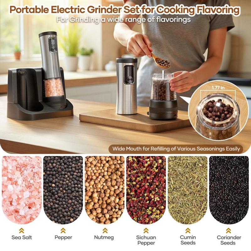 Wiederaufladbares elektrisches Gewürzmühlen-Set aus Edelstahl