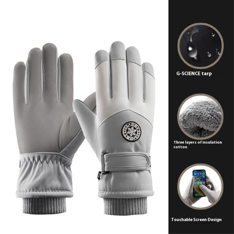 Winddichte Outdoor-Winter-Touchscreen-Handschuhe - Damen - Grau / Weiß