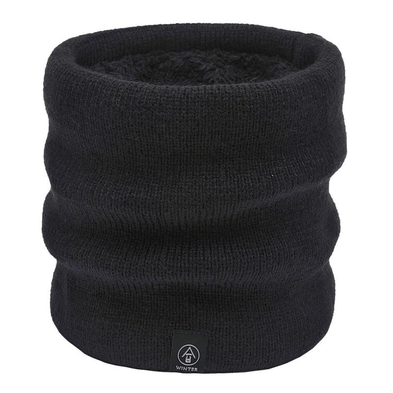 Winterliches Strick-Halstuch mit Plüschfutter - Schwarz