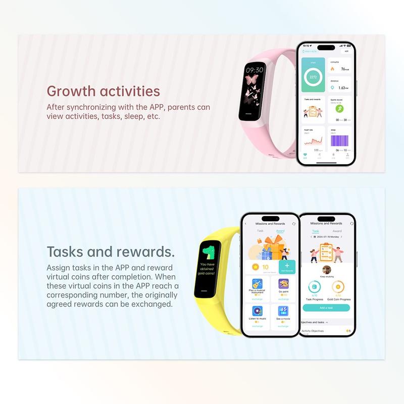 - Eltern überprüfen die tägliche Schrittzahl und Schlafqualität und setzen dann Erinnerungen für Wasserpausen oder Schlafenszeit