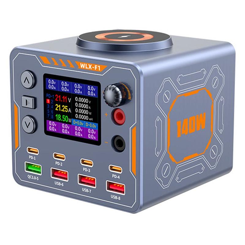 Die erstaunliche WLX-F1 140W Multi-Geräte-Ladestation ist ein leistungsstarkes und vielseitiges Desktop-Ladegerät, das für Laptops, Telefone, Tablets, Wearables und sogar Elektronikreparaturen entwickelt wurde. Ausgestattet mit 8 Ladeoptionen, darunter vier PD-Schnellladeanschlüsse, ein QC3.0-Anschluss, drei USB-Anschlüsse und ein kabelloses 15-W-Ladepad, bietet sie eine komplette Ladelösung für Zuhause, im Büro oder in der Werkstatt.
