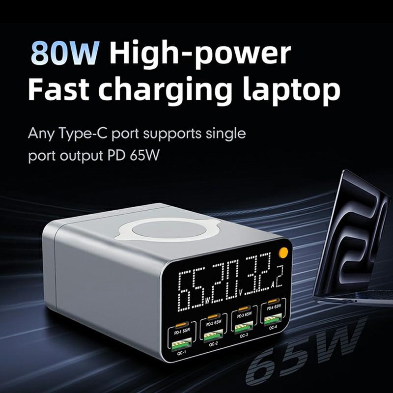 WLX-M3 80W 9-in-1 GaN-Desktop-Ladestation - Multi-Port USB-C/USB-Schnellladegerät mit Wireless Charging (EU-Stecker)