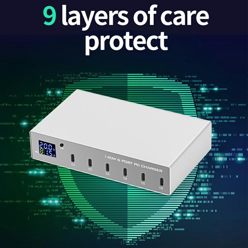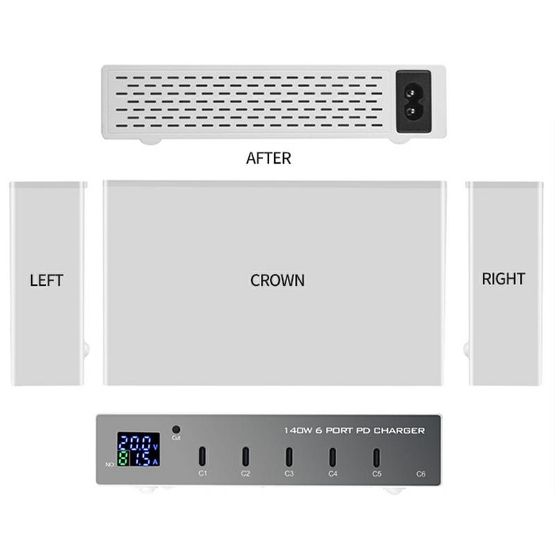 WLX-X6P 140W Desktop-Ladestation - 6-Port GaN USB-C Schnellladegerät für Laptops, Smartphones & Tablets (EU-Stecker)
