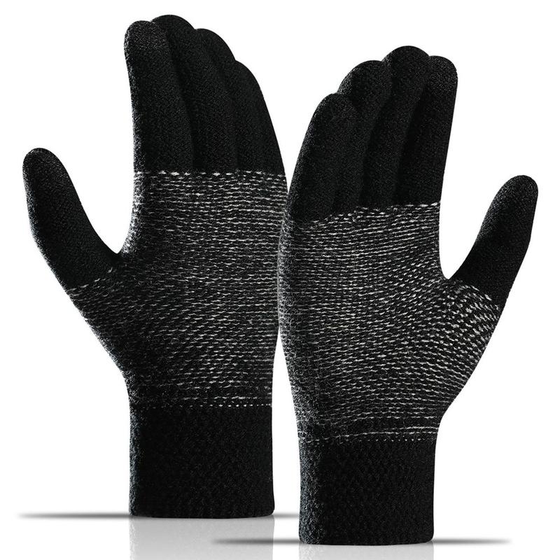 WM 1 Paar Unisex gestrickte warme Handschuhe Touchscreen dehnbare Fäustlinge mit Strickfutter Handschuhe - Schwarz