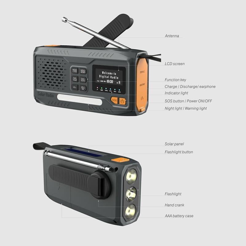 WR-6B Solar-Handkurbel-Notfallradio DAB mit LED-Taschenlampe - 40 DAB-Sender, SOS-Taschenlampe, LCD-Display
