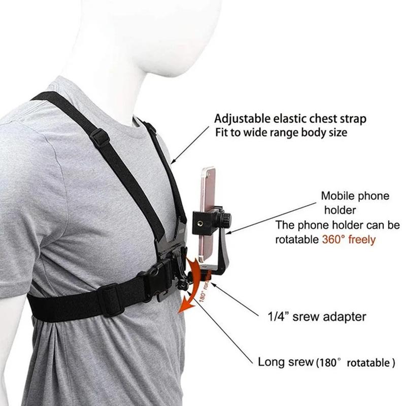 XD-27 Actionkamera-Brustgurt mit Handyhalterung - Verstellbarer Nylon-Brustgurt für GoPro und Smartphones