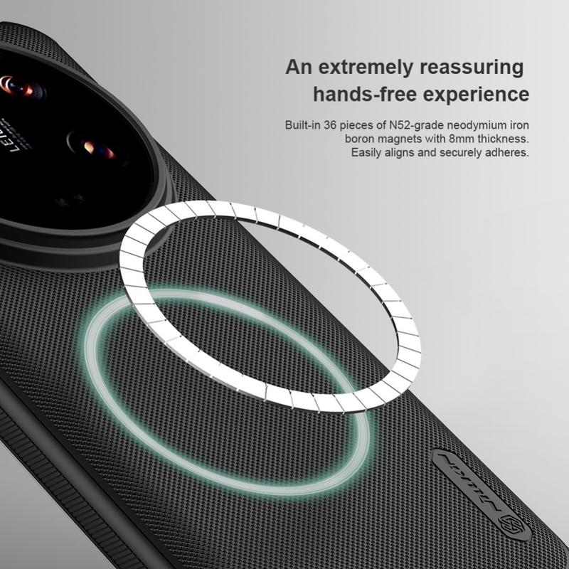 Die Nillkin Frosted Shield Pro Magnetic Hybridhülle bietet ein angenehmes Tragegefühl und starken Schutz vor täglicher Abnutzung. Dank der Kombination aus umweltfreundlichem PC und flexiblem TPU ist Ihr Xiaomi 14 Ultra bestens geschützt. Die Hybridhülle Nillkin Frosted Shield Pro Magnetic enthält außerdem einen integrierten Magnetring, der mit kabellosem Laden kompatibel ist, sodass Sie Ihr Xiaomi 14 Ultra von nun an mit der Hülle aufladen können.