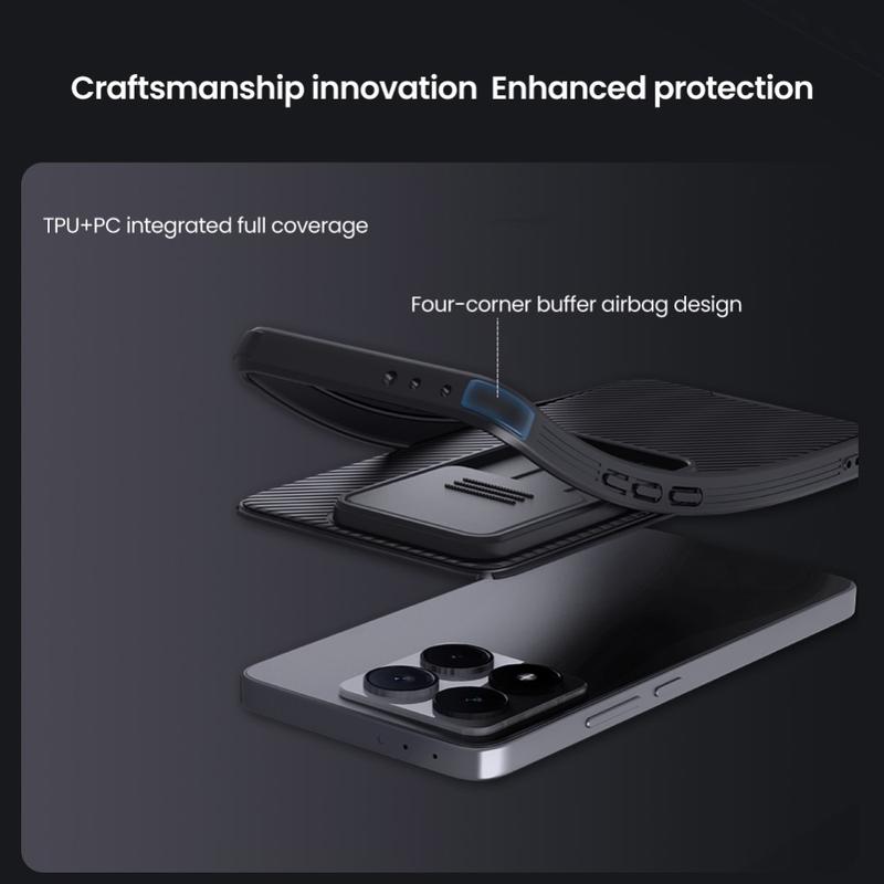 Genießen Sie zusätzliche Privatsphäre und Schutz mit der CamShield Pro-Hybridhülle von Nillkin. Durch die Kombination von starrem Kunststoff und TPU verhindert die Kameraabdeckung Kratzer und schützt gleichzeitig Ihr Xiaomi 14T vor täglicher Abnutzung.