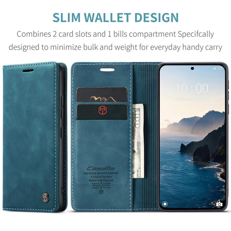- Eingebaute Magnete halten die Caseme 013 Series Wallet-Hülle geschlossen