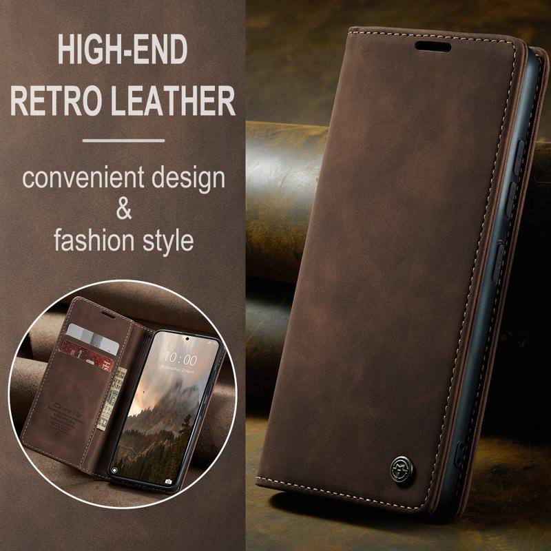 - Eingebaute Magnete halten die Caseme 013 Series Wallet-Hülle geschlossen