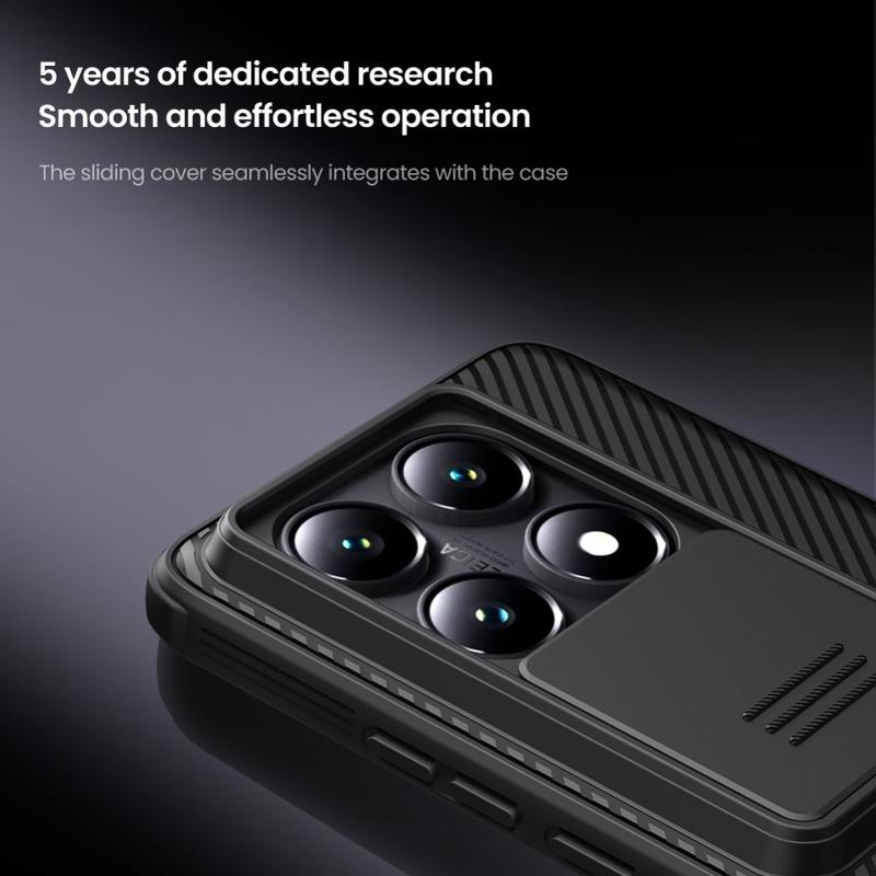 Genießen Sie zusätzliche Privatsphäre und Schutz mit der CamShield Pro-Hybridhülle von Nillkin. Durch die Kombination von starrem Kunststoff und TPU verhindert die Kameraabdeckung Kratzer und schützt gleichzeitig Ihr Xiaomi 14T Pro vor täglicher Abnutzung.