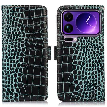 Xiaomi 17 Pro Crocodile Serie Lederhülle mit Geldbörse mit RFID - Grün