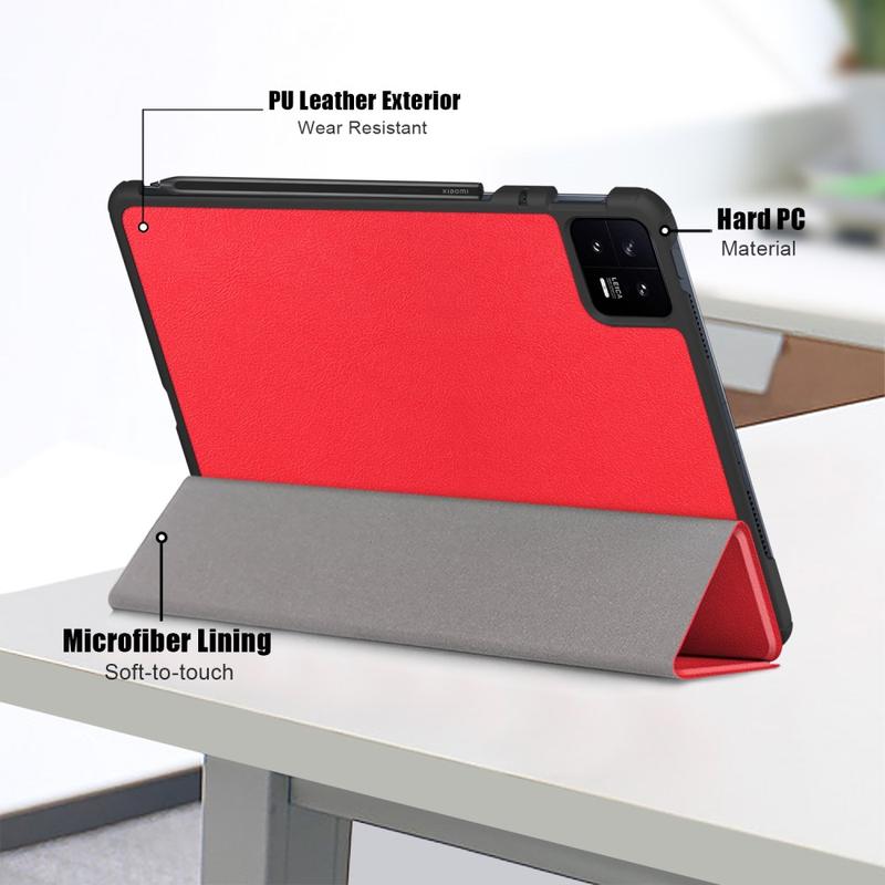 Xiaomi Pad 6/Pad 6 Pro Tri-Fold Serie Smart Folio Hülle - Rot