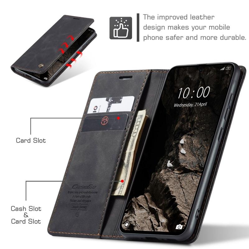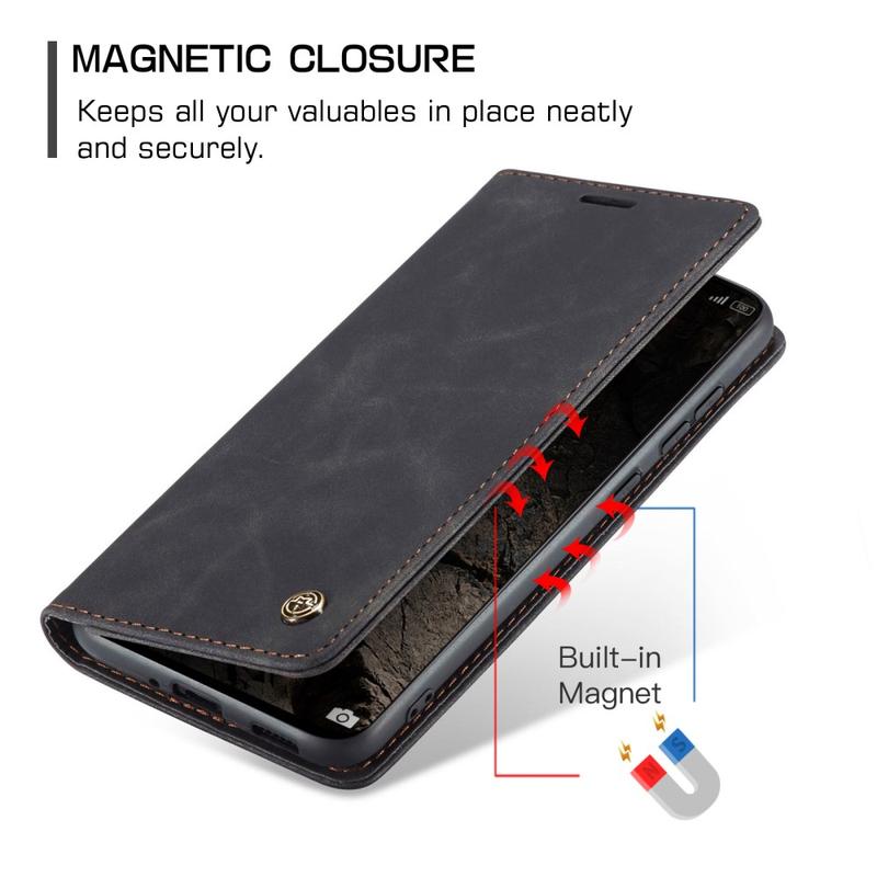 - Eingebaute Magnete halten die Caseme 013 Series Wallet-Hülle geschlossen