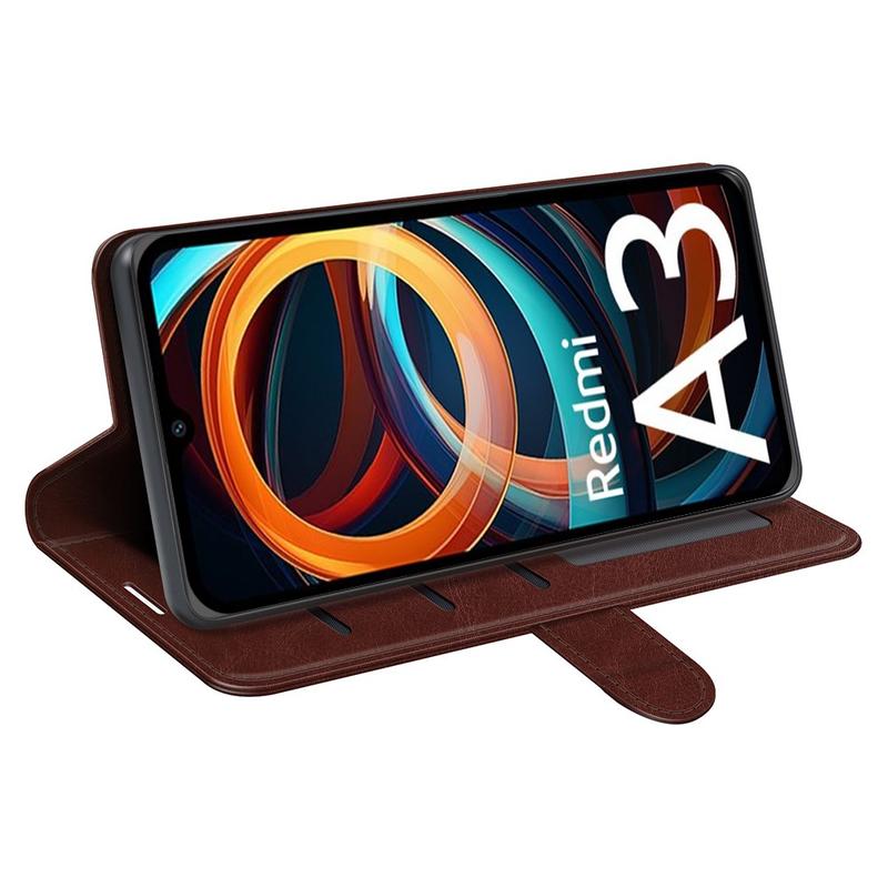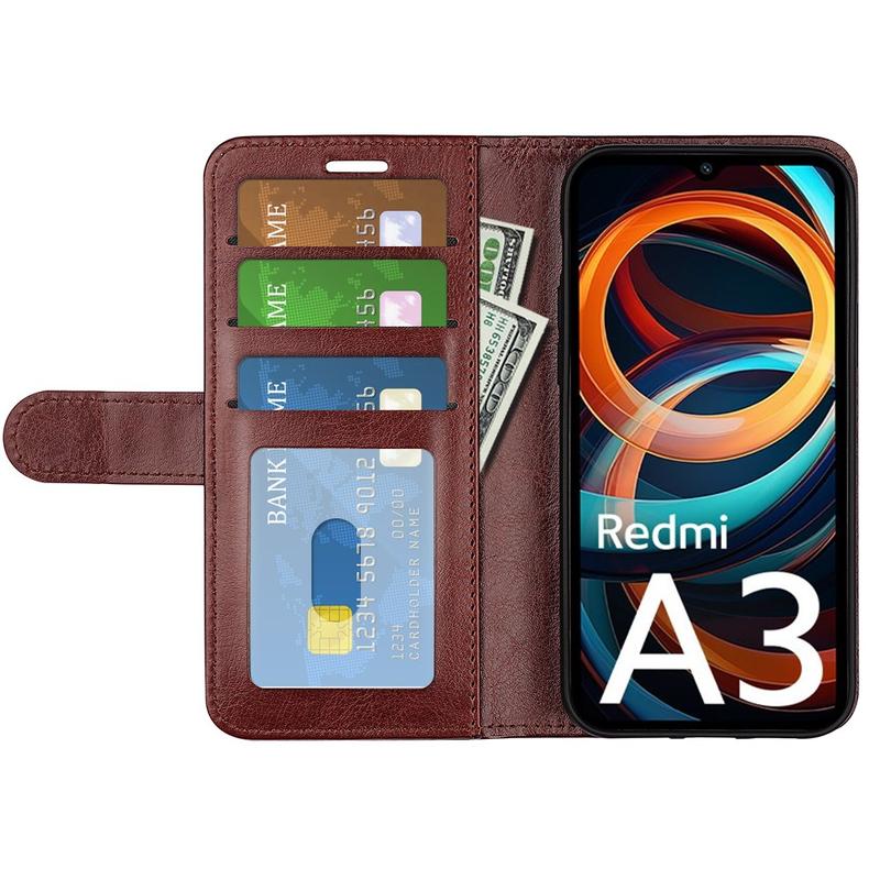Xiaomi Redmi A3 Wallet Schutzhülle mit Magnetverschluss - Braun