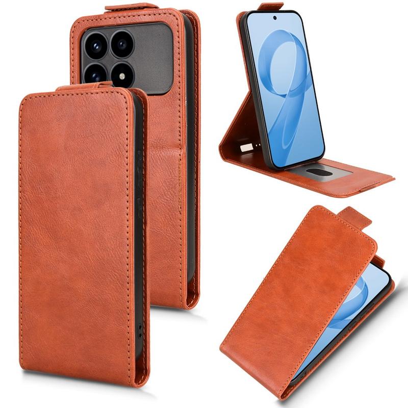 Xiaomi Redmi K90/Poco F8 Pro Vertikal Flip Hülle mit Ständer - Braun