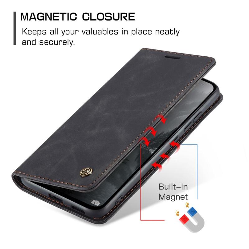 - Eingebaute Magnete halten die Caseme 013 Series Wallet-Hülle geschlossen