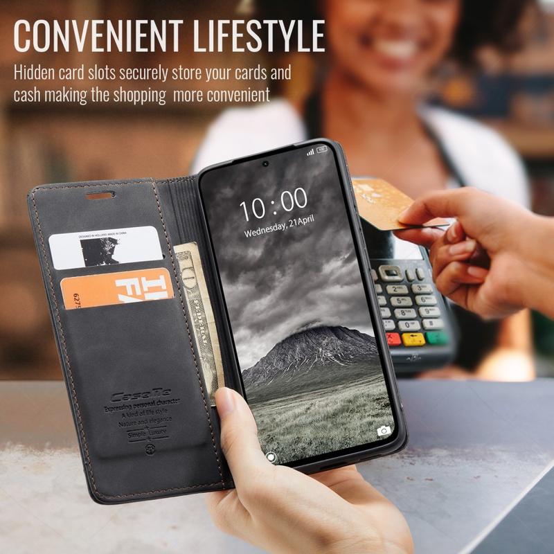 - Eingebaute Magnete halten die Caseme 013 Series Wallet-Hülle geschlossen