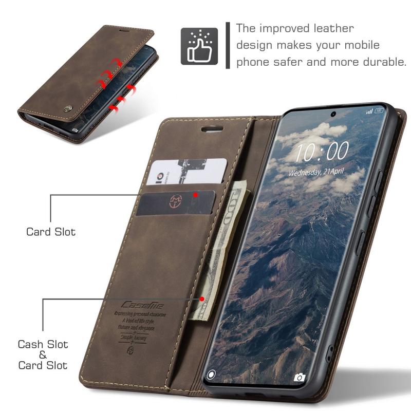- Eingebaute Magnete halten die Caseme 013 Series Wallet-Hülle geschlossen