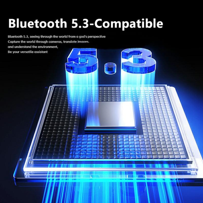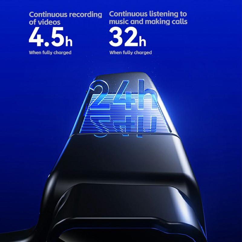 Die 2-Megapixel-Kamera nimmt 1080p-Videos mit 30fps auf und macht Fotos mit einer Auflösung von 1920 x 1080 und einem diagonalen Blickwinkel von 100° für eine immersive Perspektive. Eine halboffene akustische Struktur liefert Audio ohne Druck auf den Gehörgang, sodass Sie Ihre Umgebung wahrnehmen können, während Sie Musik hören oder telefonieren. Mit Bluetooth-kompatiblem 5.3, USB-C-Aufladung und praktischen Extras wie dem PC-CAM-Modus und mobiler OTG-Unterstützung ist es eine vielseitige Smart-Wear-Option für die Arbeit und alltägliche Abenteuer.