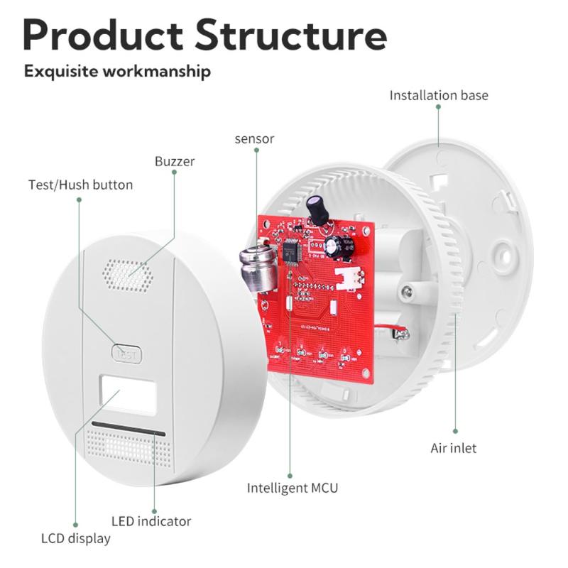 24-Stunden-Überwachung mit LCD-Anzeige: Das eingebaute LCD-Display zeigt die CO-Werte in Echtzeit an, so dass Sie die Sicherheit Ihrer Umgebung überwachen können. Der Alarm hat einen großen Erfassungsbereich von 0 bis 999 PPM und bietet eine umfassende Abdeckung.