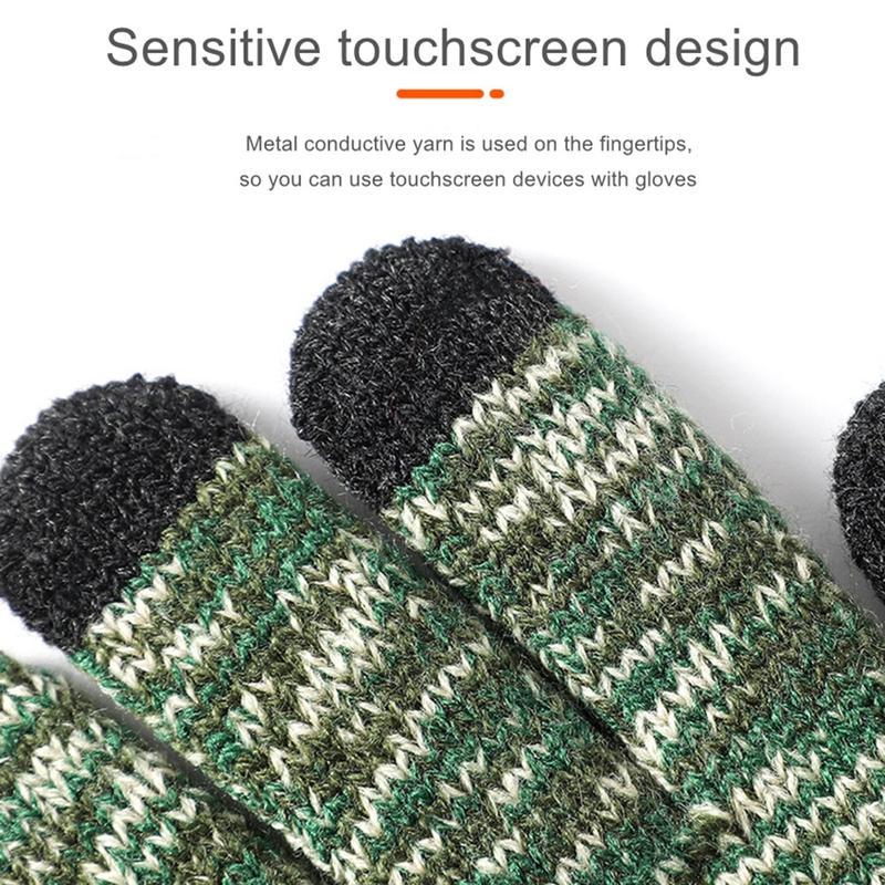Y0046 1 Paar Männer Winter gestrickt winddicht warme Handschuhe Touchscreen Texting Fäustlinge mit elastischem Bündchen - Dunkelgrau