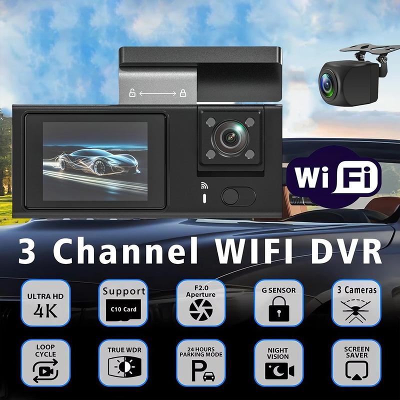 • Y08 4K Dash Cam mit drei Objektiven - Front-, Innen- und Heckkamera mit WiFi, 2" IPS-Bildschirm und G-Sensor