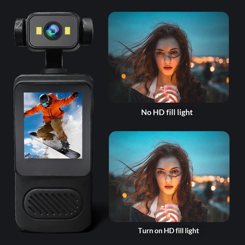 Diese Mini-Action-Kamera wurde für den aktiven Einsatz entwickelt und verfügt über ein 2K-Kameramodul und einen hochwertigen Sensor, mit dem Sie klare und lebendige Videos in einem tragbaren Format aufnehmen können. Die zwei LED-Leuchten verbessern die Sichtbarkeit bei schlechten Lichtverhältnissen, während die integrierte Bewegungsstabilisierung Verwacklungen beim Radfahren, Laufen und anderen dynamischen Aktivitäten reduziert. Damit ist sie ein nützlicher Begleiter für Nutzer, die einfache Aufnahmen und schnellen Zugriff auf Filmmaterial im Freien wünschen.
