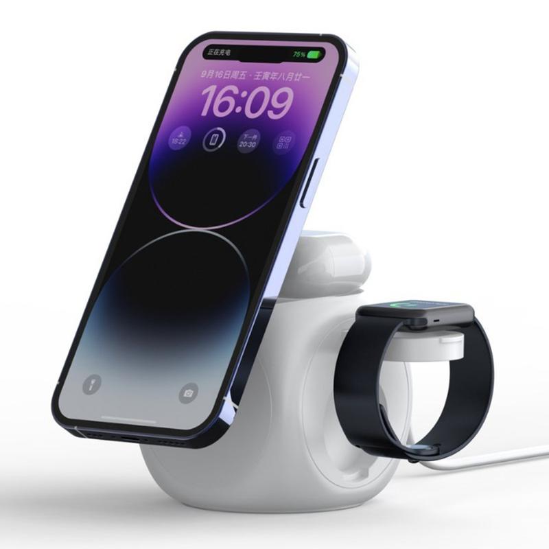 - 3-in-1 Magnetisches Laden - Bequemes gleichzeitiges Laden von iPhone, Apple Watch und AirPods mit einer kompakten und effizienten kabellosen Station.