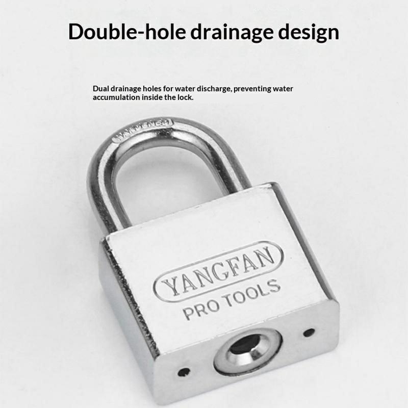 Dieses Vorhängeschloss ist so konzipiert, dass es unter verschiedenen Wetterbedingungen und in feuchten Umgebungen gut funktioniert. Die wasserdichte und rostbeständige Konstruktion schützt das Schloss langfristig vor Feuchtigkeit und Korrosion. Zwei Abflusslöcher verhindern Wasseransammlungen im Schlosskörper und tragen so zu einem reibungslosen täglichen Gebrauch unter wechselnden Außenbedingungen bei.