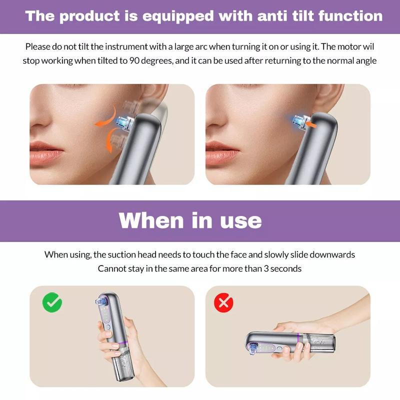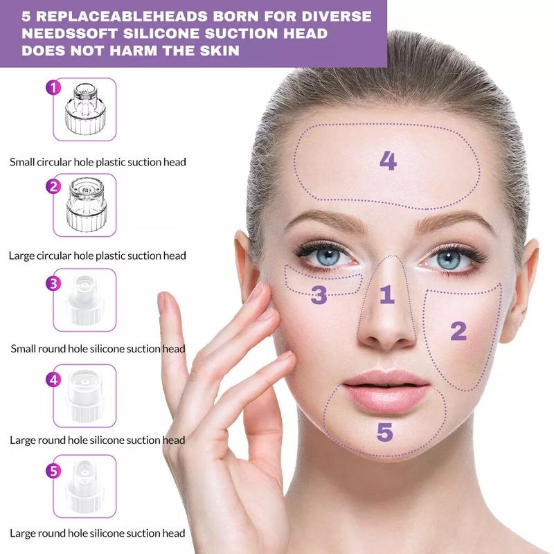 - Mehrere Saugstärken: Wählen Sie eine der einstellbaren Intensitätsstufen für unterschiedliche Hauttypen und Hautprobleme.