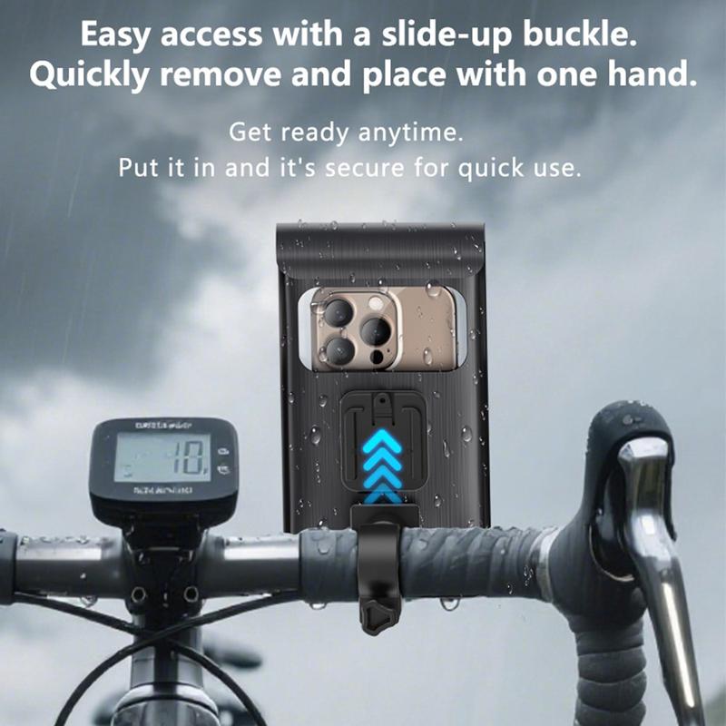 Wenn Sie bei Regen, Staub oder wechselnden Bedingungen unterwegs sind, schützt diese Handyhalterung Ihr Gerät, ohne die Benutzerfreundlichkeit zu beeinträchtigen. Das IP67-Gehäuse sorgt für zusätzliche Sicherheit, die drehbare Halterung verbessert die Sicherheit, indem sie Ihren Bildschirm in einer bequemen Sichtlinie hält, und die breite Kompatibilität macht es zu einer praktischen Wahl für die meisten Handys und Lenker.