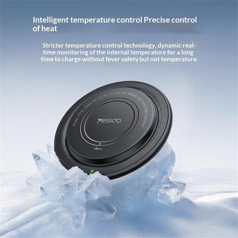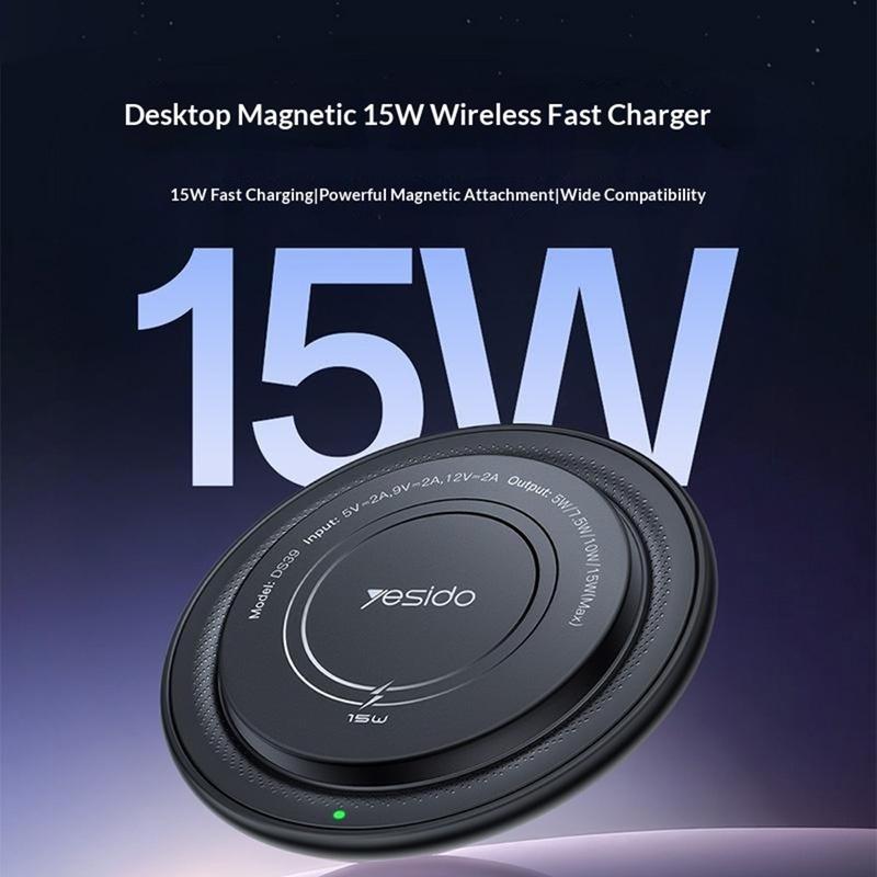 • Yesido DS39 15W magnetisches kabelloses Ladegerät - rundes Schnellladepad für Smartphones und kabellose Ohrhörer