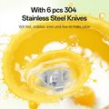 - 360°-Blatt-Abdeckung: Die Geometrie mit sechs Klingen erzeugt einen "Tornado"-Wirbel, bei dem keine Fruchtstücke zurückbleiben.