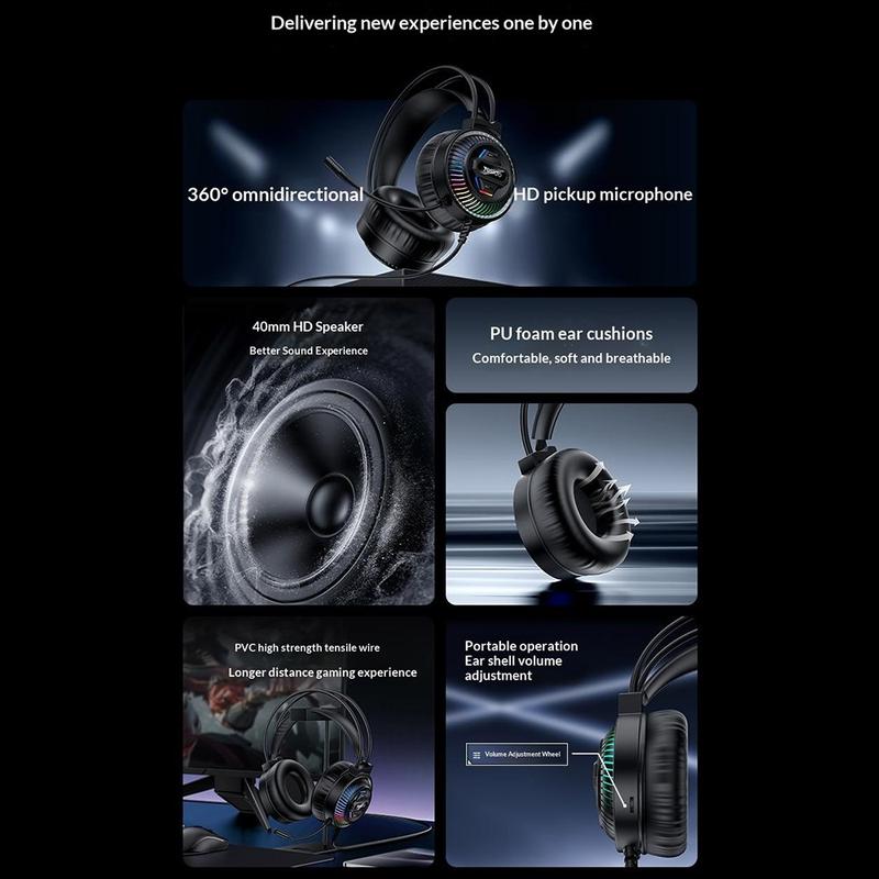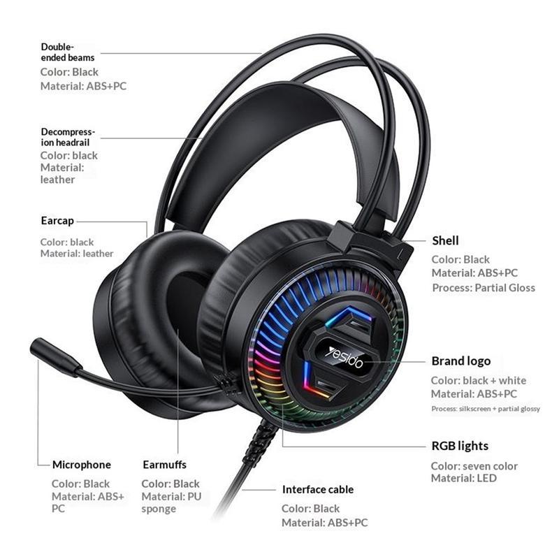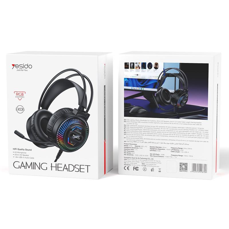 • Yesido EK06 - Kabelgebundenes RGB-Gaming-Headset mit 40-mm-HD-Treibern und 360°-Mikrofon für den PC