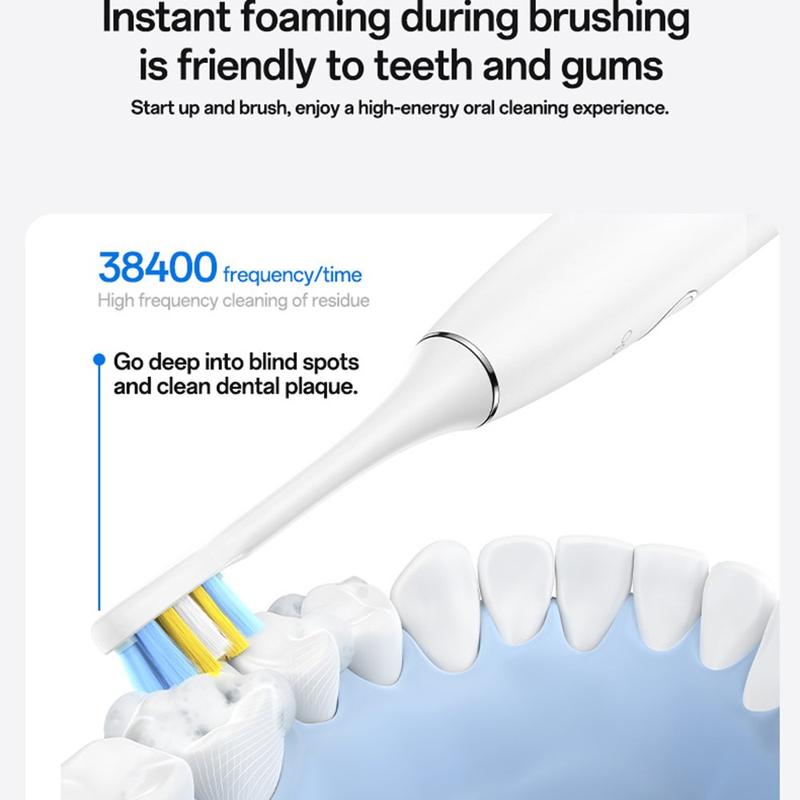 Mit bis zu 38.400 Vibrationen pro Minute entfernt die YESIDO MG24 effektiv Plaque und verbessert die Mundhygiene, ohne Zähne und Zahnfleisch zu belasten. Die Hochfrequenz-Schalltechnologie sorgt für eine gründlichere Reinigung als beim manuellen Putzen.
