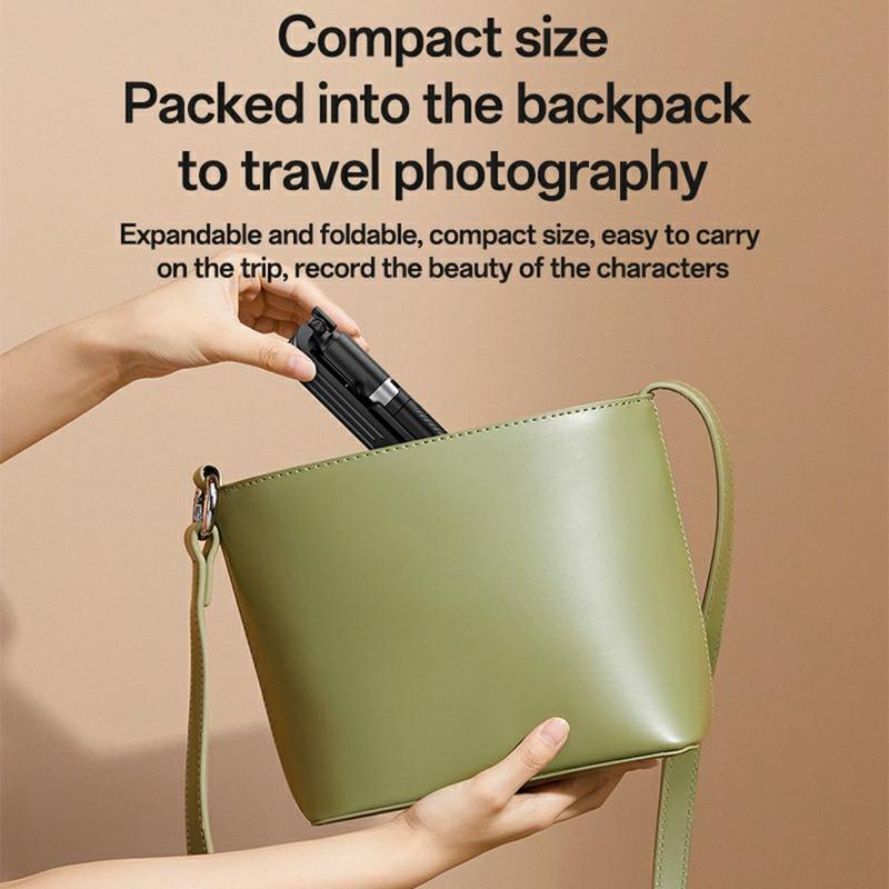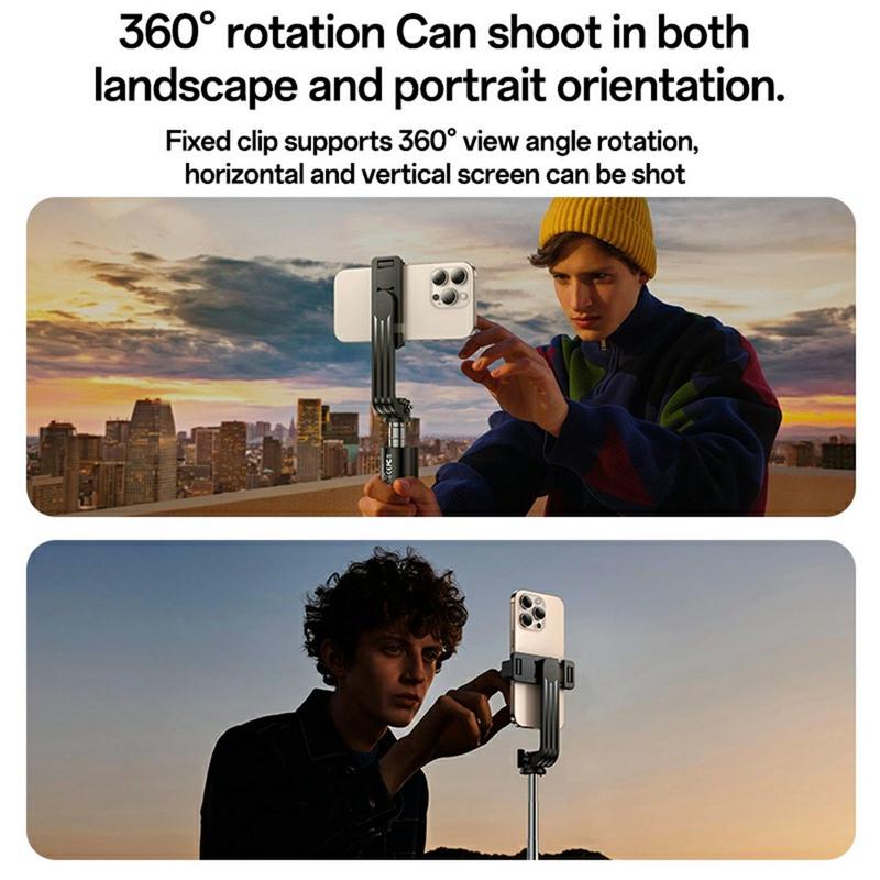 - Dual-Mode-Design - Wechseln Sie im Handumdrehen zwischen Selfie-Stick und Stativmodus, um Gruppenfotos zu machen, Sonnenuntergänge im Zeitraffer zu beobachten oder Videotelefonate freihändig zu führen.