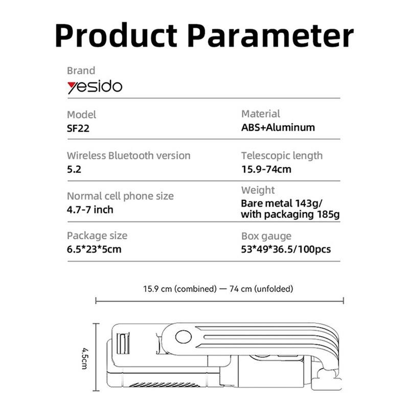 Holen Sie sich professionelle Vielseitigkeit in Ihre Tasche - legen Sie den YESIDO SF22 Outdoor Mini Selfie Stick Tripod in Ihren Einkaufswagen und werten Sie jedes Ihrer Fotos auf!