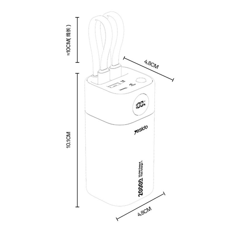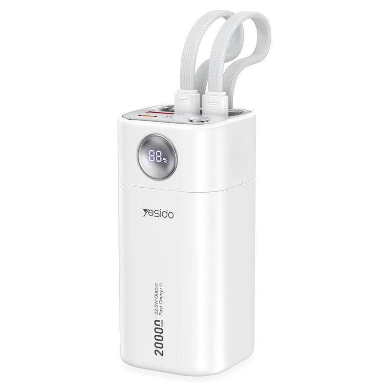 Yesido YP86 20000mAh Power Bank mit integriertem USB-C und Lightning Kabel - 22.5W - Weiß