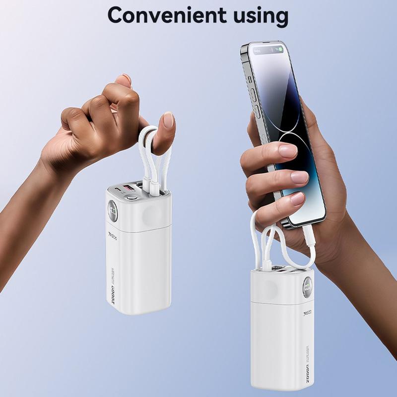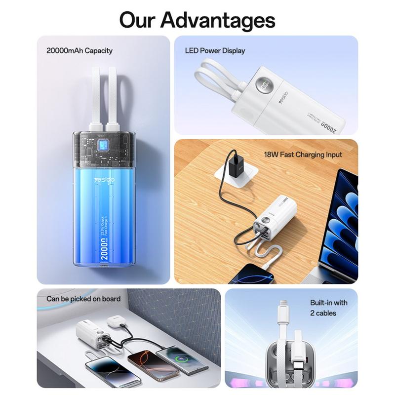 Halten Sie jedes Gerät auf Geschäftsreisen, Festivals oder auf dem täglichen Weg zum Arbeitsplatz auf dem neuesten Stand. Das taschenfreundliche YESIDO YP86 bietet eine enorme Kapazität von 20000mAh, zwei integrierte Kabel und 22.5W Schnellladeleistung in einem robusten ABS-Gehäuse mit einem Gewicht von nur 0,36 kg.