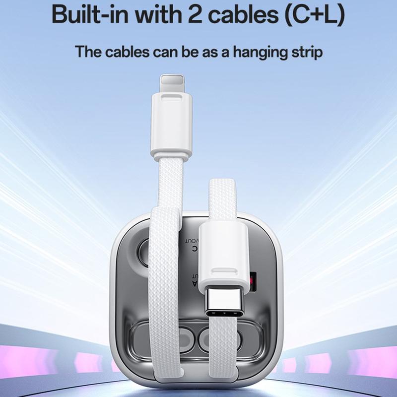 - Integrierte USB-C- und 8-polige Kabel - laden Sie Telefone, Tablets oder Ohrhörer auf, ohne zusätzliche Kabel mit sich führen zu müssen.