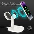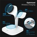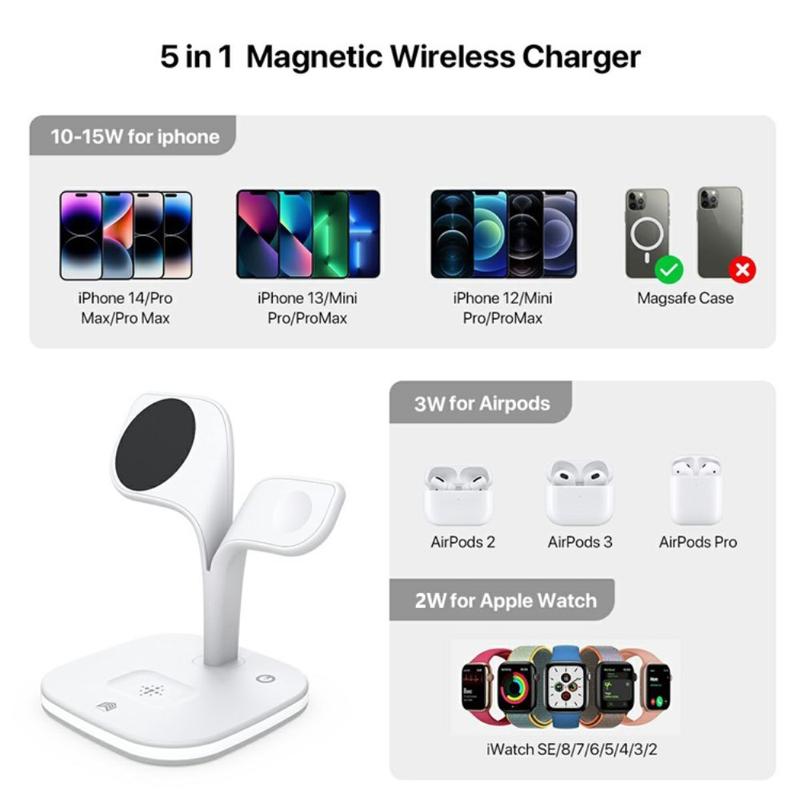 - Drahtloses 3-in-1-Laden: Ausgestattet mit zwei integrierten Ladepads, die mit MagSafe kompatibel sind, ermöglicht diese Station das gleichzeitige Aufladen von iPhone, Apple Watch und AirPods und vereinfacht so den Ladevorgang.