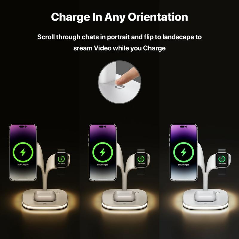 - 15W Schnellladung mit MagSafe-Kompatibilität: Ausgerichtet mit MagSafe-Lademagneten, liefert das Ladegerät schnelleres und sichereres kabelloses Laden. Es lädt das iPhone 17, 16, 15, 14, 13 und 12 (Pro/Pro Max/Mini/Plus) in ca. 1,5 Stunden von 0 auf 80 % auf und versorgt gleichzeitig die Apple Watch Series 1-10/Ultra/SE und die AirPods 2/3 Pro/Pro 2.