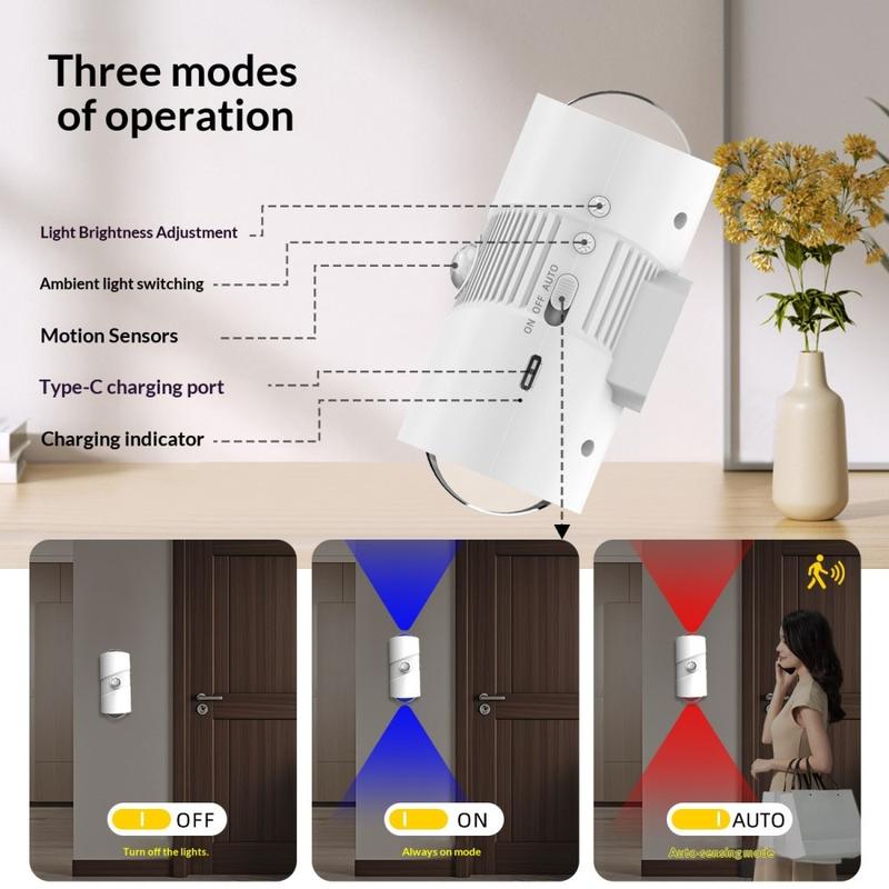 Sein intelligentes Sensorsystem reagiert auf Bewegungen bei schlechten Lichtverhältnissen, schaltet sich automatisch ein und nach einer kurzen Verzögerung wieder aus, um Energie zu sparen. Mit 4 Helligkeitsstufen und mehreren Beleuchtungsmodi kann es sowohl als praktisches Nachtlicht als auch als gemütliches Stimmungslicht genutzt werden. Das magnetische Befestigungssystem ermöglicht eine einfache Anbringung ohne Bohren oder komplizierte Montage.