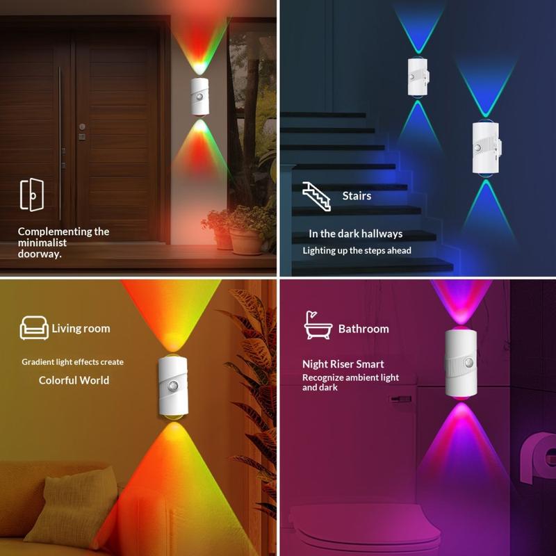 Verleihen Sie Ihrem Zuhause mit dem intelligenten RGB-Bewegungssensor-Nachtlicht YSJ-008A praktische Beleuchtung und eine sanfte dekorative Note. Diese kompakte Wandleuchte wurde für Flure, Schlafzimmer, Kleiderschränke, Badezimmer und Eingangsbereiche entwickelt und vereint automatische Bewegungserkennung, einstellbare Helligkeit und farbenfrohe RGB-Lichteffekte in einem praktischen, wiederaufladbaren Gerät.