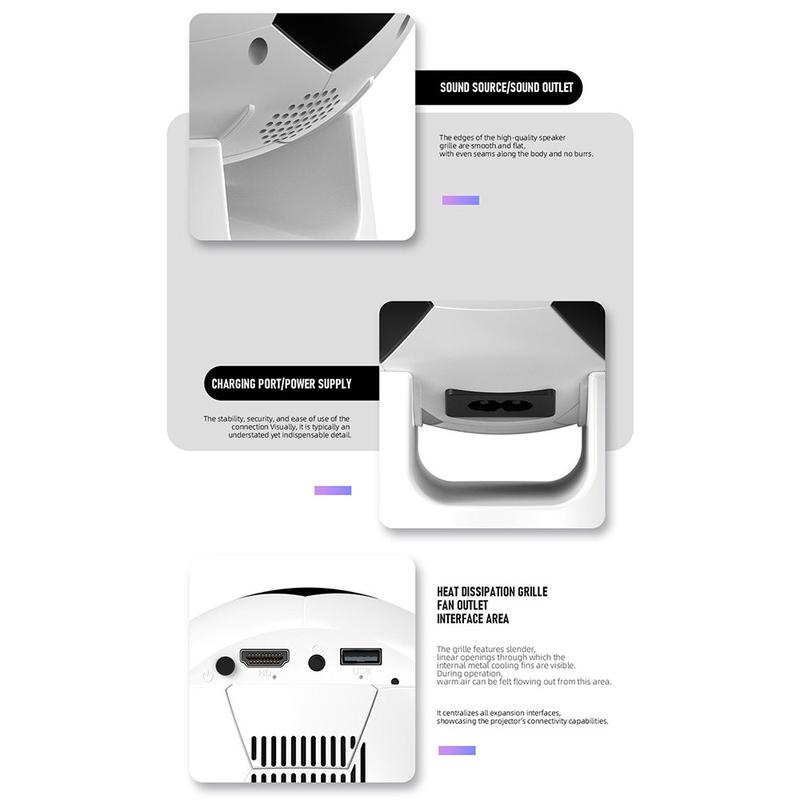 Der YT600 Miniprojektor im Fußballdesign kombiniert intelligente Unterhaltung mit einem spielerischen, kompakten Formfaktor. Mit Android 13.0 ermöglicht er den sofortigen Zugriff auf beliebte Streaming-Apps, ohne dass externe Geräte benötigt werden. Mit HD-Auflösung, reibungsloser Leistung und moderner drahtloser Konnektivität ist er ein vielseitiger Projektor für Heimkino, Sportabende, Spiele oder den gelegentlichen Einsatz im Freien.