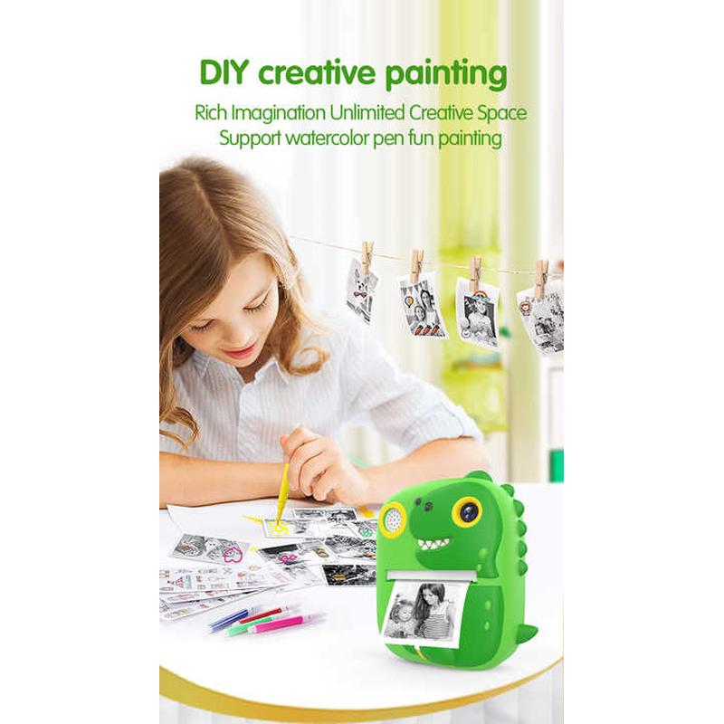 YYTech P3 T-Rex Sofortdruck-Kinderkamera - 1080P, 2,4" Doppellinse, Blitz